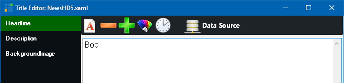 2. Select one of the Title fields from the left hand column (such as Headline, Description etc) then click Data Source from the top menu bar.