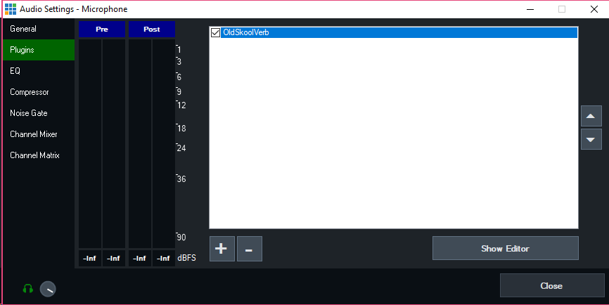 The Audio Plugins feature allows adding 3rd party audio plugins to inputs and outputs in vMix.