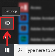 Open up Windows Settings. This can be found by clicking the cog icon in the start menu in Windows 10 or by searching for Settings in the start menu.