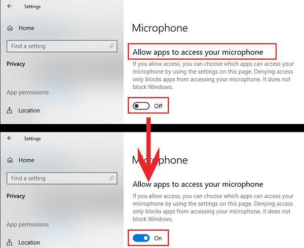 This may mean that the Privacy setting in Windows has been set to not allow apps to access your microphone or audio input. To fix this, please complete the steps below: